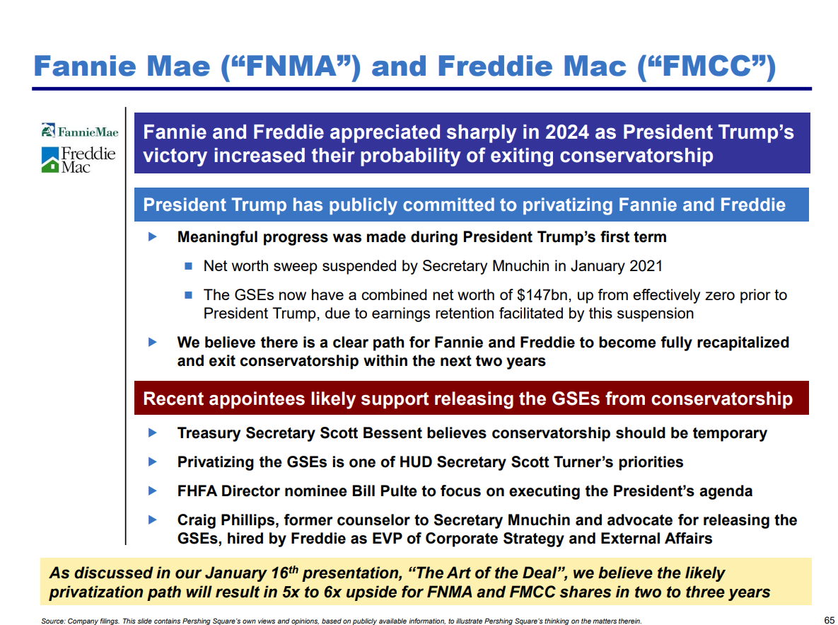 We conclude that Fannie Mae and Freddie Mac present a unique asymmetric opportunity rooted in policy change. Our stance is bullish on both common and preferred in anticipation of recapitalization, with preferred as the safer bet and common as the high-octane kicker. The next 24 months are likely to be decisive – either unlocking substantial value or, if things go awry, leaving us with suboptimal, stagnant holdings. Given our analysis of stakeholders, incentives, and the administration’s commitment, we lean towards a positive resolution. Thus, we recommend positioning accordingly, while remaining vigilant to adjust should the winds shift.