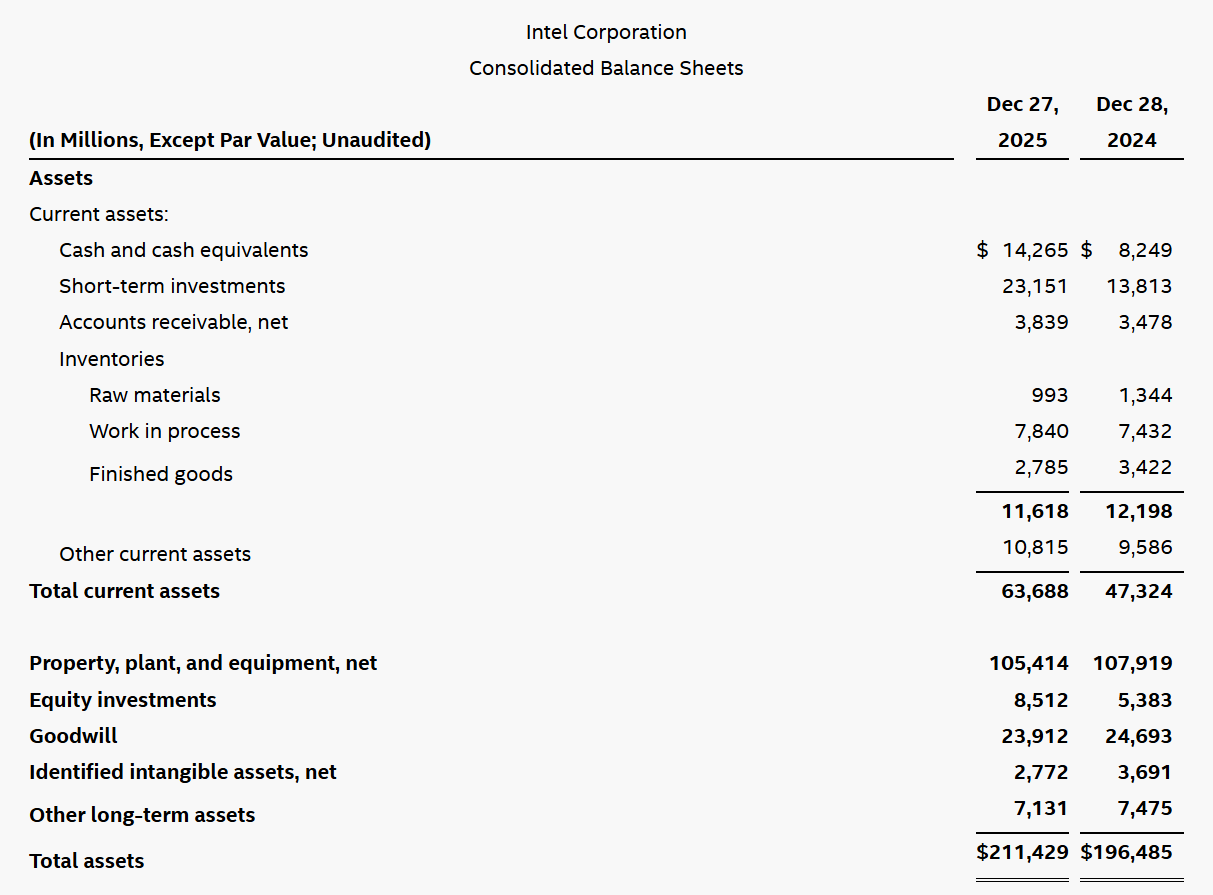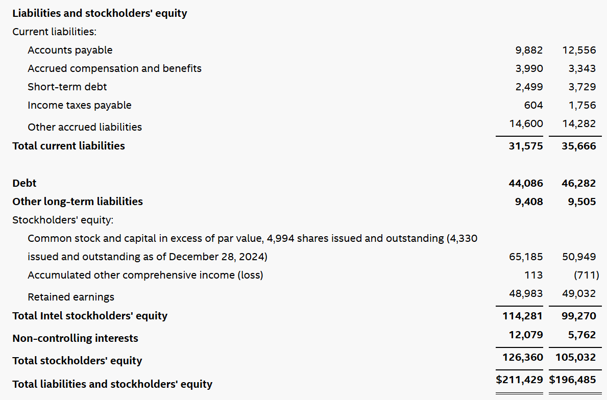 As of the latest quarter (Q4 2025), Intel’s balance sheet had $14.3 billion in cash and equivalents against $44.1 billion in long-term debt[36]. The debt load jumped in recent years as Intel raised capital to fund fab expansions and also incurred some debt for Mobileye’s spin-out.