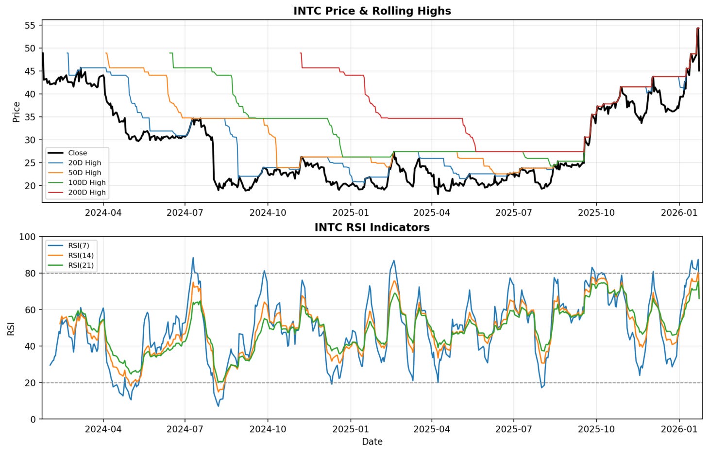 One important technical consideration is that Intel’s rally had a significant sentiment component – it became a bit of a momentum trade tied to AI hype and nationalist investment themes in late 2025, which means technicals and fundamentals were interacting.