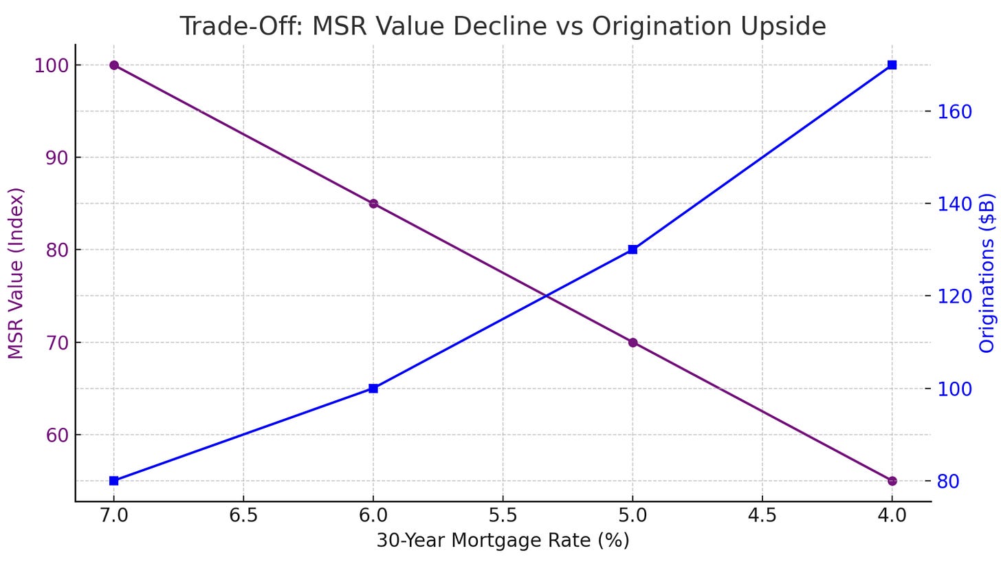 Also, during 2020, many lenders faced hedging stress: when rates fell rapidly, their pipelines of locked loans soared and hedges had to be managed; some smaller outfits got caught when MBS market dislocated in March 2020. UWM navigated it - evidencing strong capital markets competence. Another side effect: MSR volatility - 2020’s refis decimated MSR values. UWM’s MSR (though not public then) would have taken a hit, but because they were originating so many new loans, they naturally replenished servicing. It’s a natural hedge: refis churn MSRs but create new ones.
