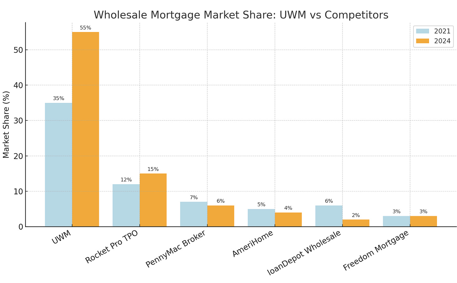 UWM’s competitive strategy centers on a simple premise: dominate the wholesale channel by being the fastest, most reliable, and lowest-cost lender for brokers. This strategy has yielded a sizeable moat, though not one without challenges.